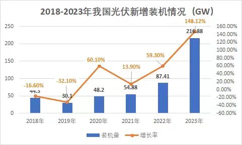 裝機量再度刷新!光伏市場持續(xù)火熱! 1月26日,國家能源局發(fā)布2023年全國電力工業(yè)統(tǒng)計數(shù)據。2023年1~12月光伏新增裝機216.88GW,同比增長148.12%。 去年,對于光伏行業(yè)來講是爆發(fā)式增